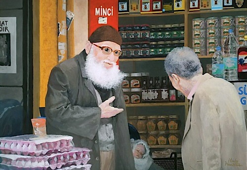 赤ちゃんと店内にいる女性は想像で描き足しました。