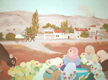 トルコのカッパドキアの光景です。背景はアルフィナホテル前ですが、実際におばちゃん達が作業していたのは別の場所。